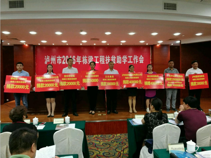 2016年7月1日上午,四川省佳乐企业集团有限公司在泸州市召开的2016年栋梁工程扶贫助学工作会上,积极响应市政府的号召,带头现场举牌捐助栋梁工程扶贫助学资金,获得了社会各届的一致好评。
