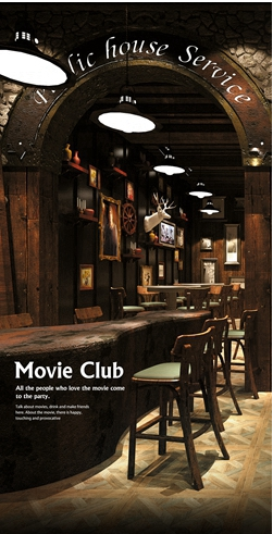 五、电影主题餐厅以电影复古风为主要装修风格,店内张贴各类电影海报,配置了古老的活动照相术和幻灯放映机,并以怀旧电影主题曲营造就餐氛围。
