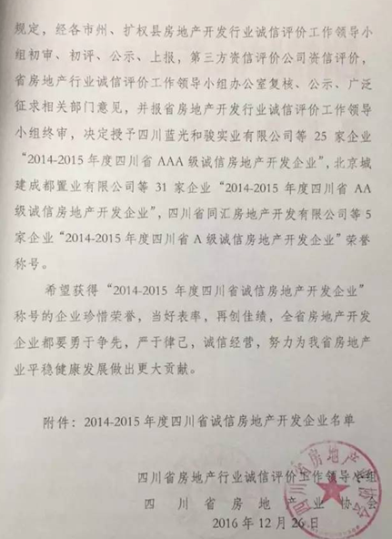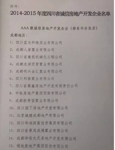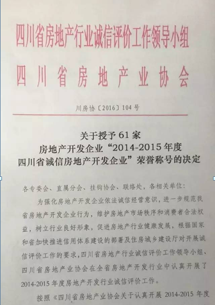 恭喜泸州益佳房地产开发有限公司当选2014--2015年度四川省AAA级诚信房地产开发企业(泸州地区唯一一家)。