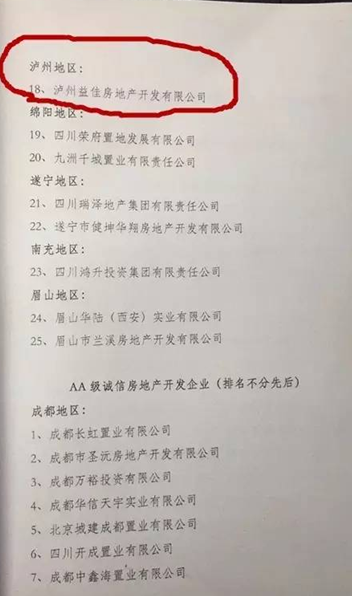 泸州益佳地产开发有限公司获四川省AAA级诚信开发企业