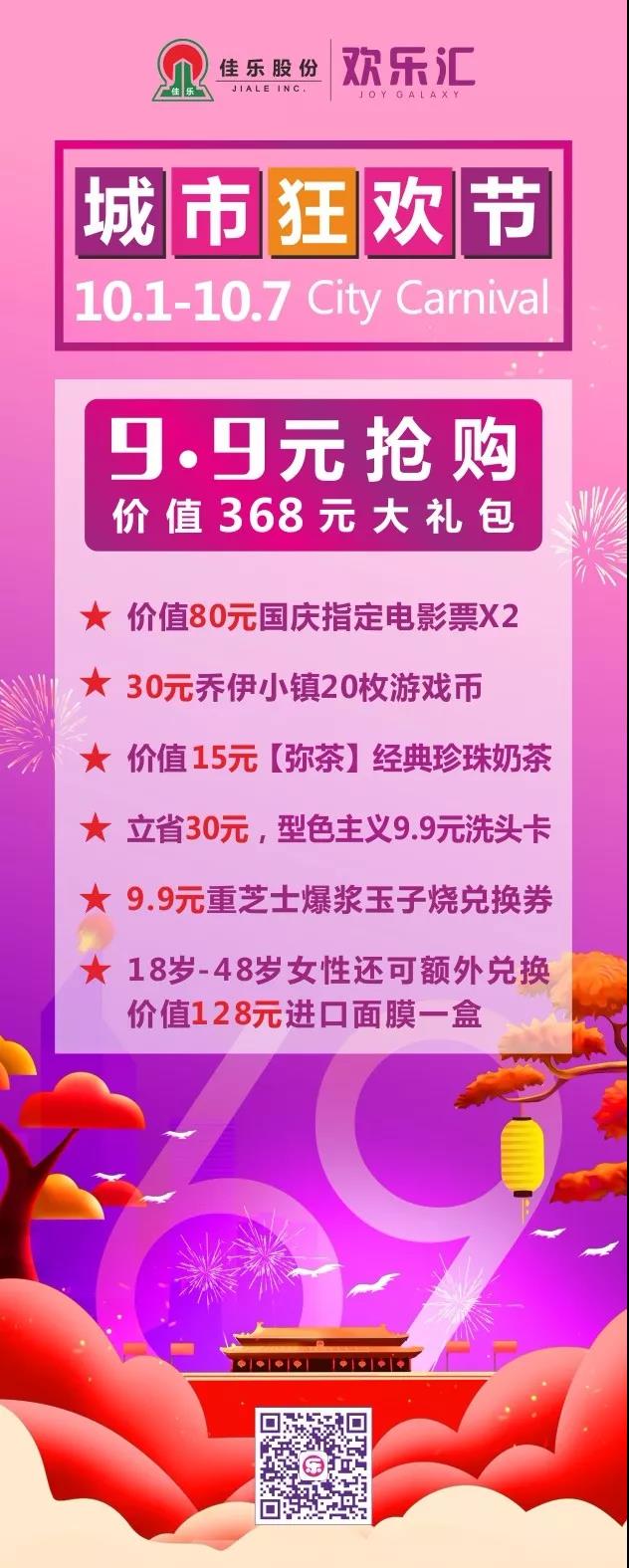 最强攻略 | 9.9元玩遍国庆假期!快来佳乐世纪城!