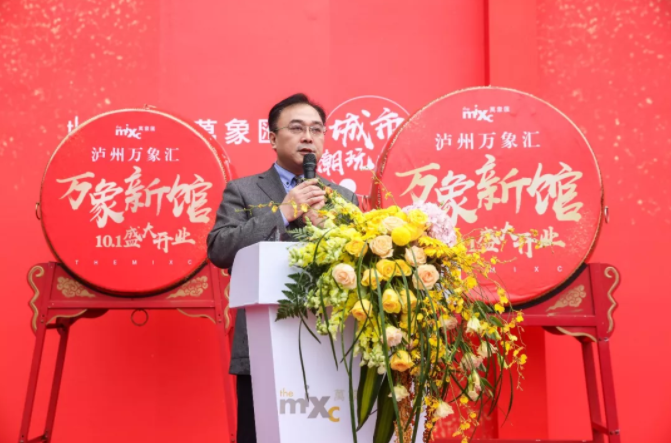华润置地商业华西大区总经理吴拯致辞:我们将竭诚回馈每位关心我们的朋友,并在万象新馆开业后更加用心经营好万象汇,不辜负佳乐集团以及所有商户伙伴的信任,为泸州商业发展做出我们的贡献。