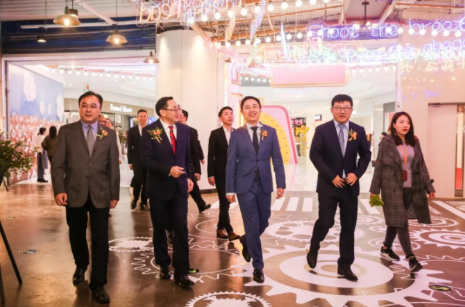 早上9点25分,四川省佳乐企业集团有限公司董事长熊国铭,华润置地商业华西大区总经理吴拯,泸州市佳乐资产管理股份有限公司董事长杨晓明,准时到达万象汇新馆献上祝贺。