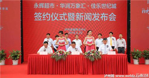 2016年6月22日上午,永辉超市•华润万象汇•佳乐世纪城签约仪式暨新闻发布会在佳乐世纪城展示中心举行。永辉超市正式签约进驻泸州金融商业中心,成为继华润置地后,又一入驻世纪城的商业巨头,超市预计8月底开业。市委书记蒋辅义讲话,市人大常委会主任陈雁出席签约仪式。